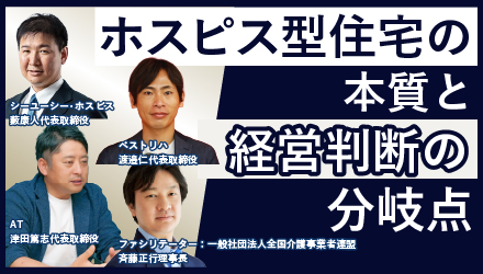 ホスピス型住宅を巡る不正請求問題を受け、その運営のあり方が改めて問われている。不正が起きる背景や現場の課題を整理し、制度と経営の両面からホスピス型住宅の今後の方向性を議論する。入居者の尊厳を守り続けるために、何が求められるのか。運営事業者とともにこれからのホスピス像を探る。