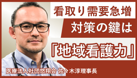 ホスピス型住宅の急成長は奇しくも在宅ケアにおける医療的ケア・緩和ケアニーズの大きさを浮き彫りにした。一方で病床数・病床機能の適正化と高額療養費を含む医療費の自己負担の増加は、入院という選択のハードルを上げる。利用者のQOLと尊厳、利用者の経済的負担の軽減、そして事業の持続可能性の確保。この3つを両立させるために必要なのが、在宅や施設における医療対応力、在宅ケアの限界点を上げていくことだ。スタッフの負担を増やすことなくケアの質を上げるためには「地域看護力」がキーになる。