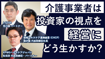 介護・医療業界では厳しい経営環境が語られる一方で、投資ファンドによる投資や再編は継続している。なぜ本分野は投資対象であり続けるのか。本座談会では、介護・医療サービスを中心に業界環境を整理し、投資家がどの領域や経営に可能性を見出しているのかを明らかにする。また、投資家が重視する評価軸や課題を共有し、経営者が今後どのような経営判断を行うべきかを議論する。