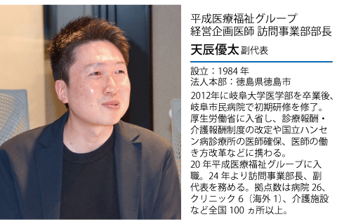 天辰 在宅医療の領域は当グループにとってまだ歴史が浅いですが、病院事業全体としては長年の運営実績があります。転機となったのが、約10年前にグループ全体でGoogle Workspaceを導入したことです。拠点数が多いため、従来はFAXや紙によるやり取り、出張による打ち合わせなどに多くのコストがかかっていましたが、オンライン会議や文書共有が日常化したことで、拠点間連携は大きく効率化しました。業務の標準化や品質の担保もしやすくなり、クラウド型電子カルテの普及も相まって、在宅医療を含め全体の運営が進めやすくなりました。RPAは有効なツールですが、導入には業務整理が不可欠です。どの業務を自動化するのかを見極める必要があり、導入する側にも一定の設計力や運用スキルが求められます。
