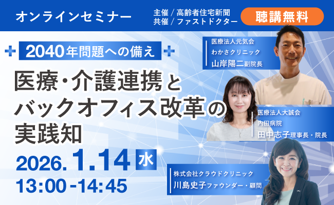 主催:株式会社高齢者住宅新聞社共催:ファストドクター株式会社 開催日2026年1月14日(水)時 間13時00分~14時45分 ...
